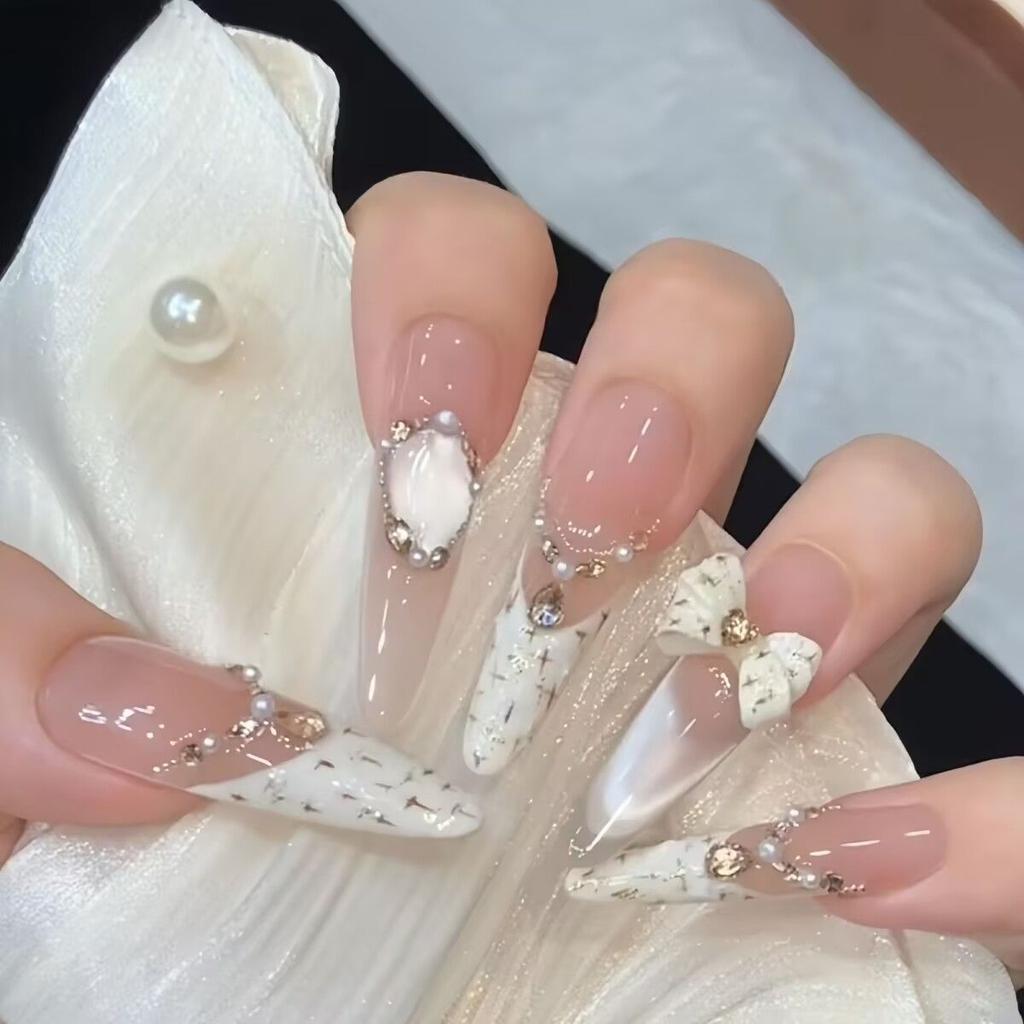 Purely handmade wearing nail small fragrant wind pure desire wind long white nail piece finished nail patch flash handmade nail