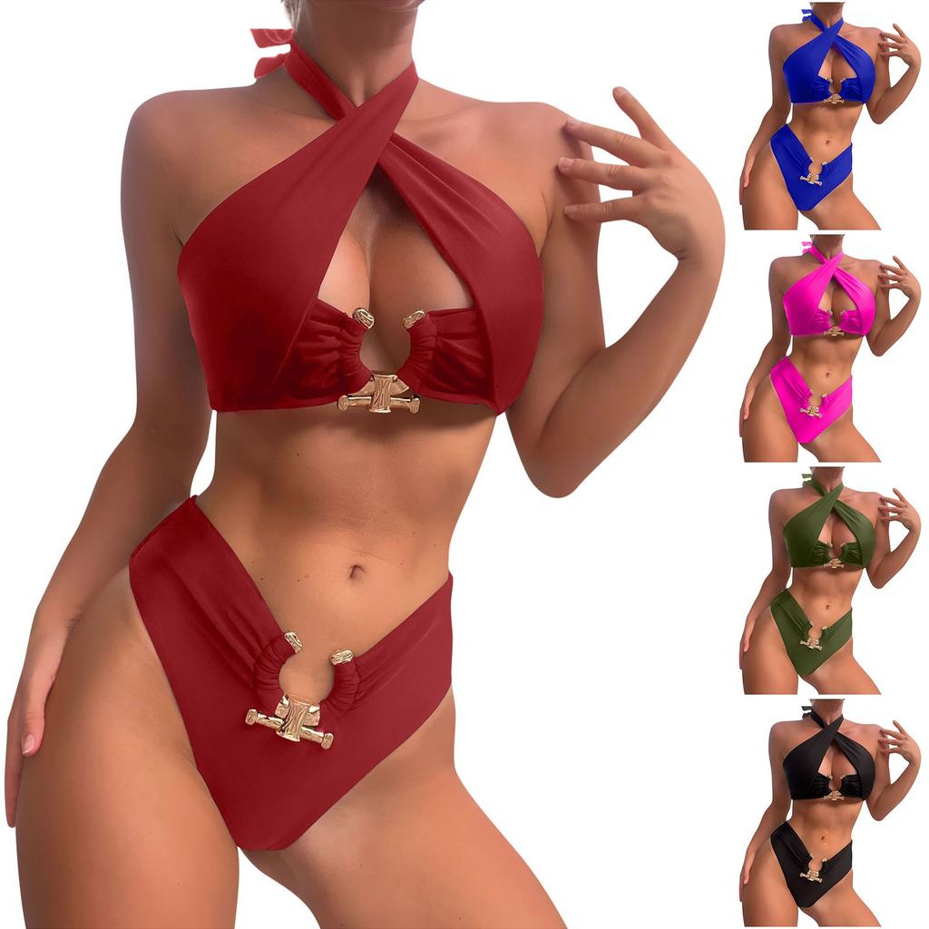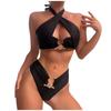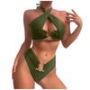 Women's Split Neck High Waist Sexy Hollow Back Bikini Swimsuit