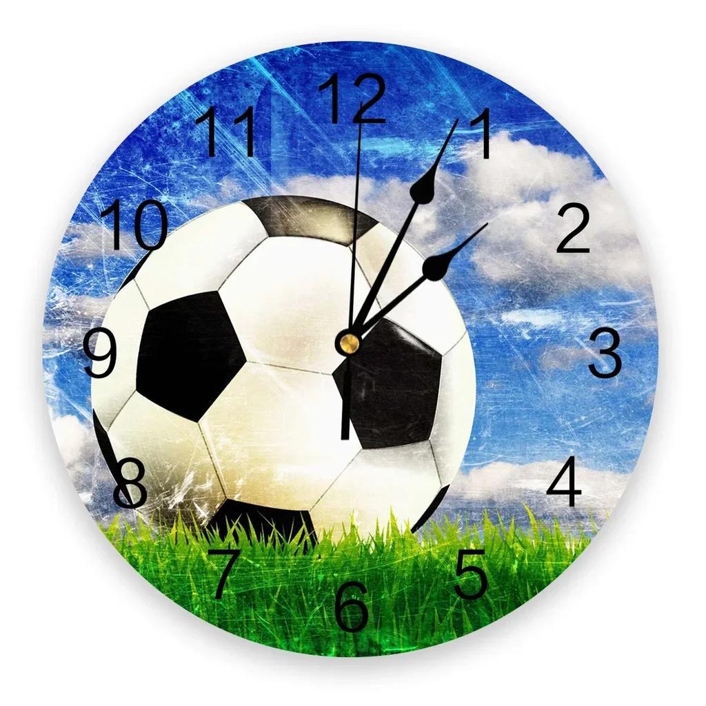 Sky Grass Football Clock Living Room Home Decor Large Round Wall Clock Mute Quartz Table Clock Bedroom Decoration Wall WatG6A9Q7
