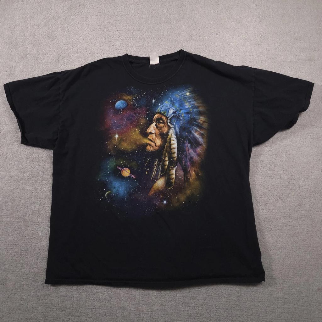 Native American Space Shirt Mens 2XL Black Galaxy Headdress Planets Graphic Tee