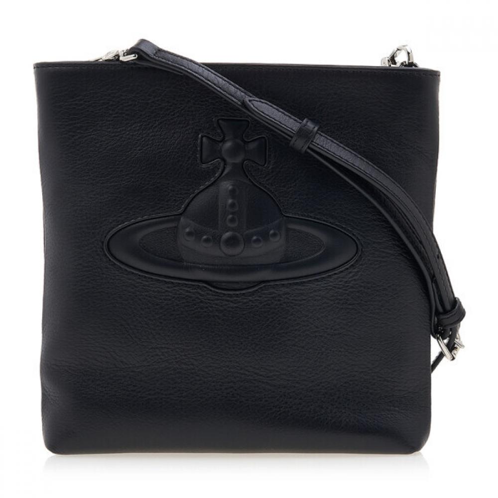 The Vivienne Westwood Squire Square Crossbody Bag 51160005 L001S N401 is a women's clutch-style crossbody bag featuring a practical interior space and a square minimalist design. The main material is soft synthetic leather, and it includes a zipper closure and an adjustable strap, allowing for various wearing styles.