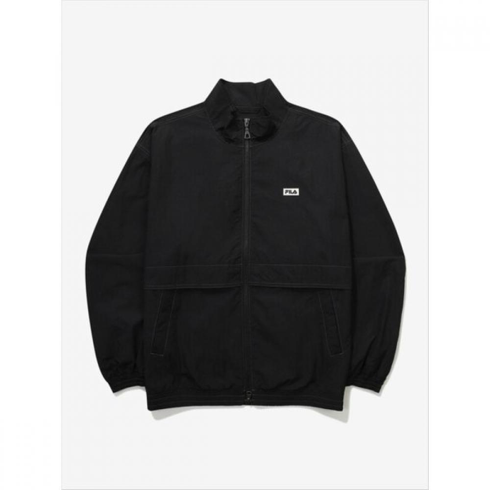 The Fila 2-Type Choice Essential Stand Neck Windbreaker FS2JKG1101X is available in two colors: Black (BLK) and Off-White (OWH), designed as a men's sports jacket. This product features a short length and long sleeve style with a stand neck design. Made from lightweight windproof material, it emphasizes wind protection functionality and is conveniently secured with a zipper closure. It also features side zipper pockets for easy storage of personal items.