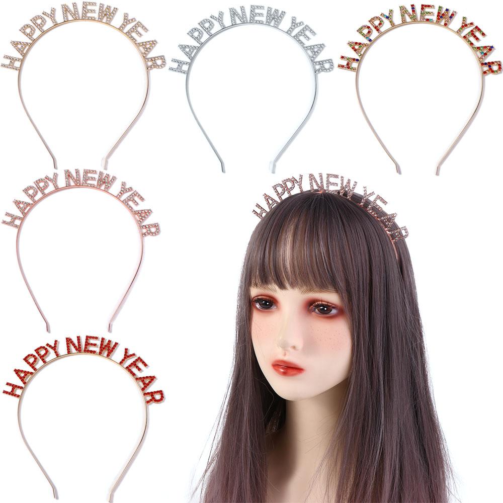 New Year Headdress HAPPY NEW YEAR Headband Female Jewelry Rhinestone Crown Korean Style Hair Hoop