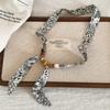 Print Pattern Beaded Scarf Leopard Print Sweater Chain Elegant Scarf Necklace Women