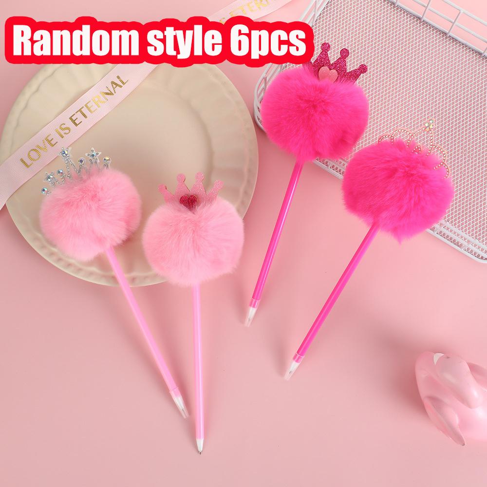 6pcs Furry Pom Ballpoint Pen Point Office School Supplies for Writing Comfortable Grip Stationery School Office Supplies Student Prize Gift Writing To