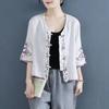 Retro Embroidered Plate Button Linen Cotton Shirt Women's Summer New Chinese Zen Tea Suit Loose Short V-neck Top