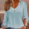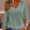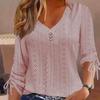 EastRogue Women's Fashion Casual Summer Solid Color Print Long Sleeve V-Neck Jacquard Button Loose Blouses & Shirts