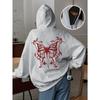 Women's Minimalist Casual Butterfly Print Gothic Hooded Sweatshirt with Double Hats for Outerwear