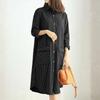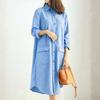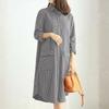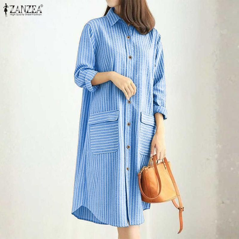 ZANZEA Dámské ležérní pruhované šaty košilového střihu s dlouhým rukávem a límcem
