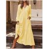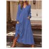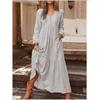 Boho Vintage Womens Maxi Dress Loose Cotton Linen Long Sleeve V Neck Button Down Pocket Dress Femme Robe Fall Winter