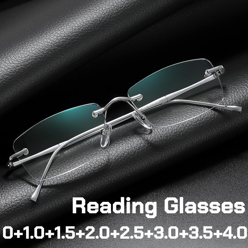 Luxury Designer Metal Frameless Reading Glasses Women Fashion Ultra-Lightweight Versatile Blue Light Blocking Presbyopia Glasses