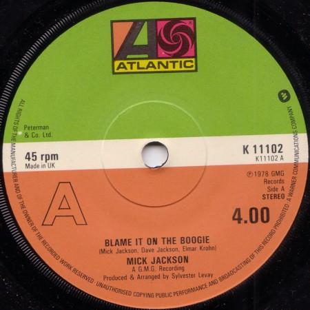 7inch Record MICK JACKSON Blame It On The Boogie K11102 Atlantic 1978 UK SoulFunk Used