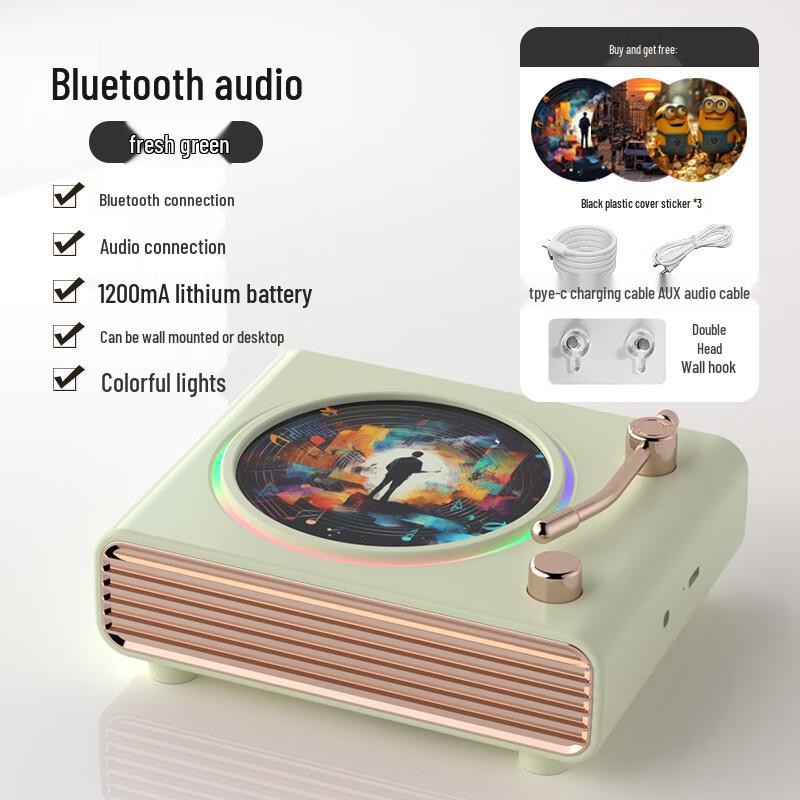Vintage Wireless Speaker with Ambient Light, Rotating Record Player, Long Battery Life & Superior Sound Quality