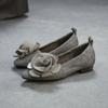 Johnature Genuine Leather Flower Low Heeled Shoes Retro Lightweight And Comfortable Women's Slip-on Shoes