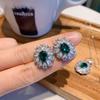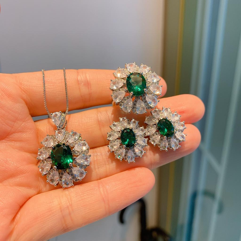 New European and American style retro imitation emerald Dan-shaped inlaid pendant, earrings, rings, jewelry set, women's fashion