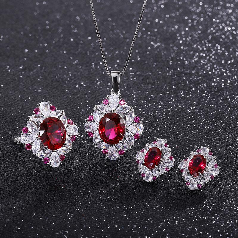 New European and American style retro imitation Hongbao fashion women's pendant necklace stud earrings ring set main stone 12 * 10 6 * 8