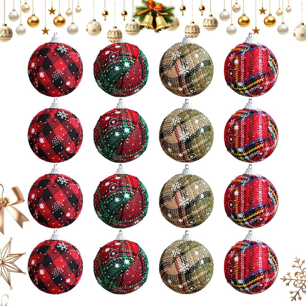16pcs 6cm Christmas Balls Decorations Plaid Fabric Balls Christmas Tree Hanging Decoration For Home Bedroom Window Display