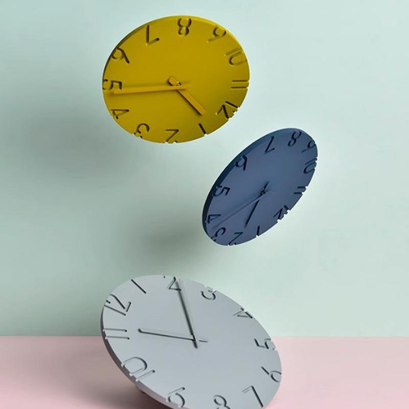 Round Wall Clock 12-Inch 3D Number Cement Texture Clock Modern Wall Decoration For Living Room Kitchen Farmhouse Office Bedroom