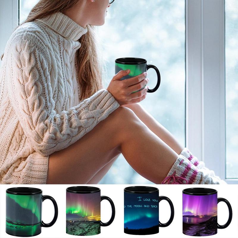 Měnící barvu hrnky na kávu Keramické hrnky na horký čaj Design polární záře Keramický hrnek Teplotně citlivý Magický hrnek Pro domácí potřeby