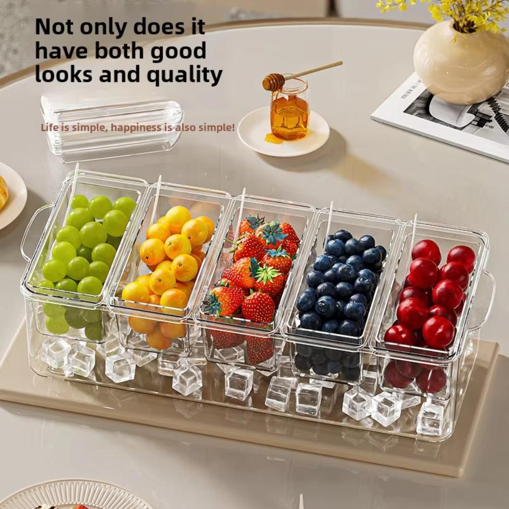 Ice Chilled 5 Compartment Condiment Server Organizer Garnish Tray with Lids Outdoor Clear Dispenser Removable Fruit Serving Tray