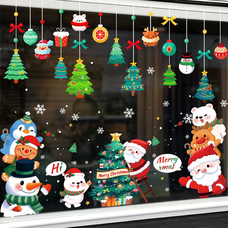 Christmas Window Stickers Happy New Year Decorative Glass Window Static Sticker Merry Xmas Santa Claus Shopping Center Ornament