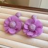 Colorful Long Drop Earrings Boho Style 3D Flower Fabric Earring Beach Party