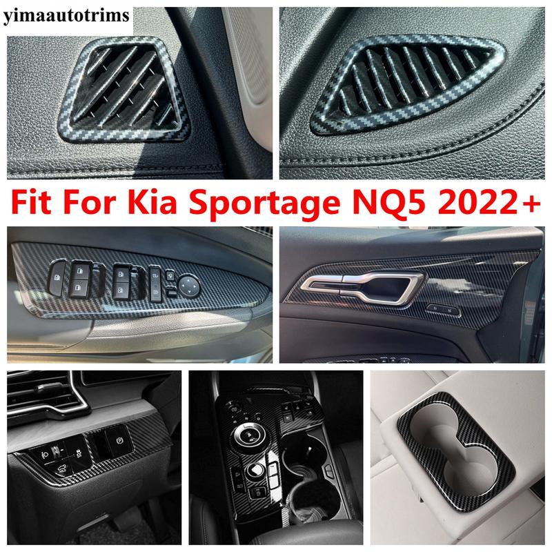 Gear Shift Panel / Handle Bowl / Water Cup / Window Lift Cover Trim For Kia Sportage NQ5 - 2025 Carbon Fiber Accessories