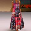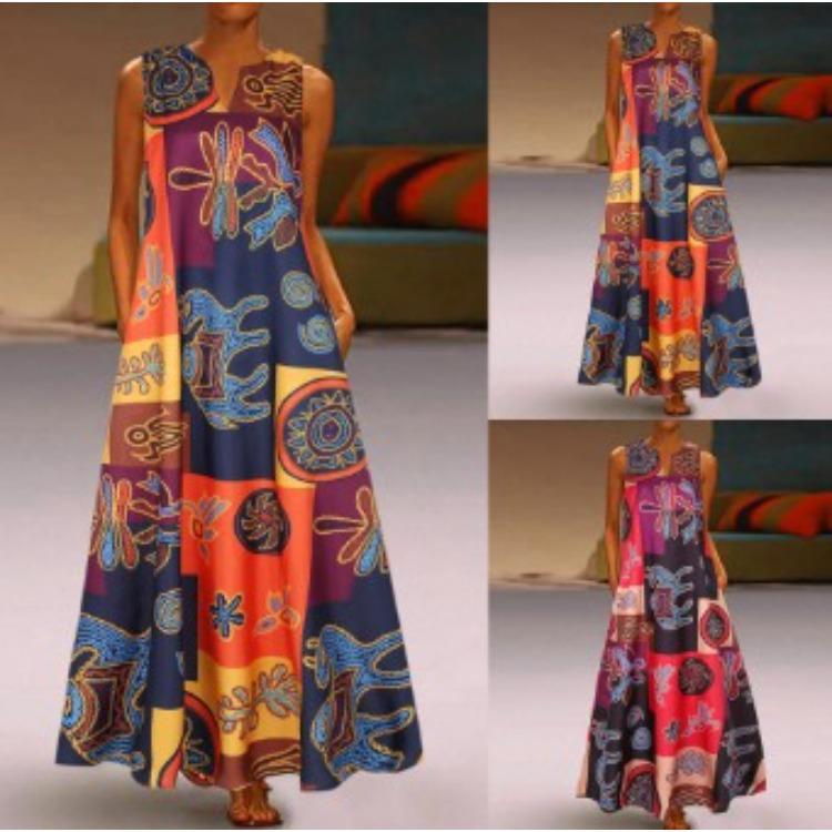 Summer V-Neck Sleeveless Dress with Pockets Vintage Print Color Block Design Comfortable Breathable Lightweight Slimming Flattering Fit for Women