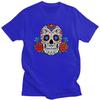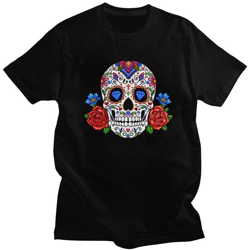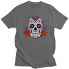 Custom Mexican Flower Rose Skull T Shirt for Men Pure Cotton Tshirt Fashion Tees Tshirt Clothing