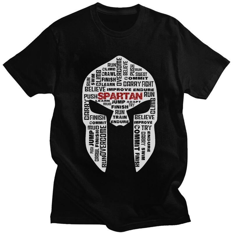 Custom Spartan Race Helmet Tshirt for Men Short Sleeves T Shirt Fashion Sparta Spirit Tshirts Loose Fit Pure Cotton Tees Gift