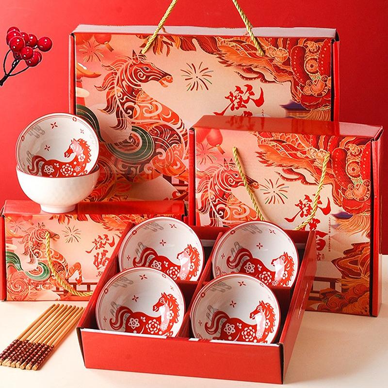 Dárková sada keramických misek a hůlek - Rok koně - Suvenýr k novoročnímu dárku