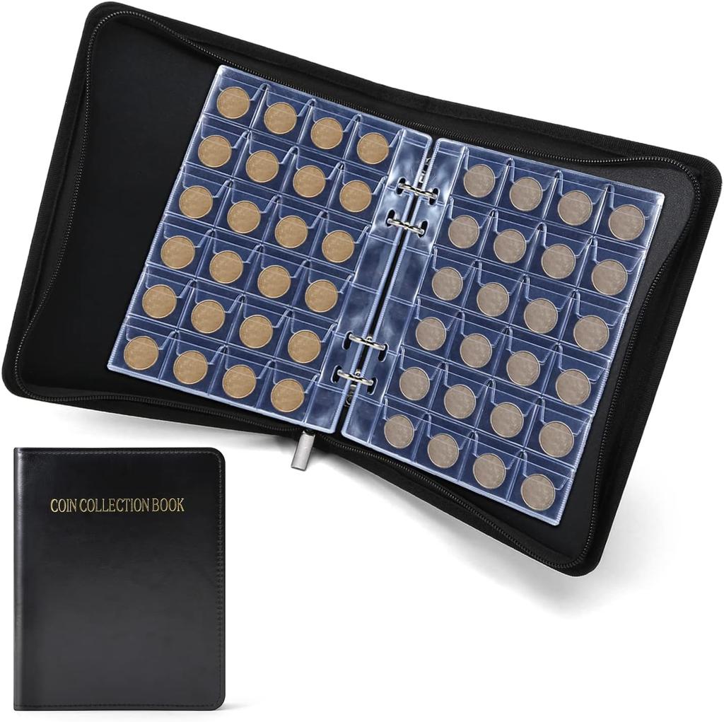 PAKESI Coin File Coin Album, Holds 480 Coins, 3x3cm Pockets, for Commemorative Coins/Antique Coins/Coin Collections