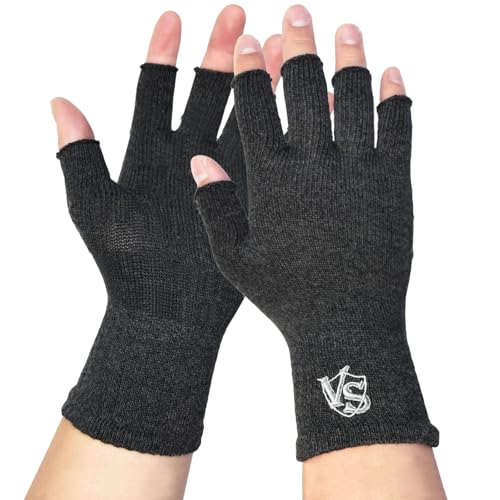 VITAL SALVEO Fingerless Compression Gloves, Functional Fingerless Gloves for Office, Outdoors, Sports, and Exercise, Unisex, CJ-5501 (Pair) (XL, Dark