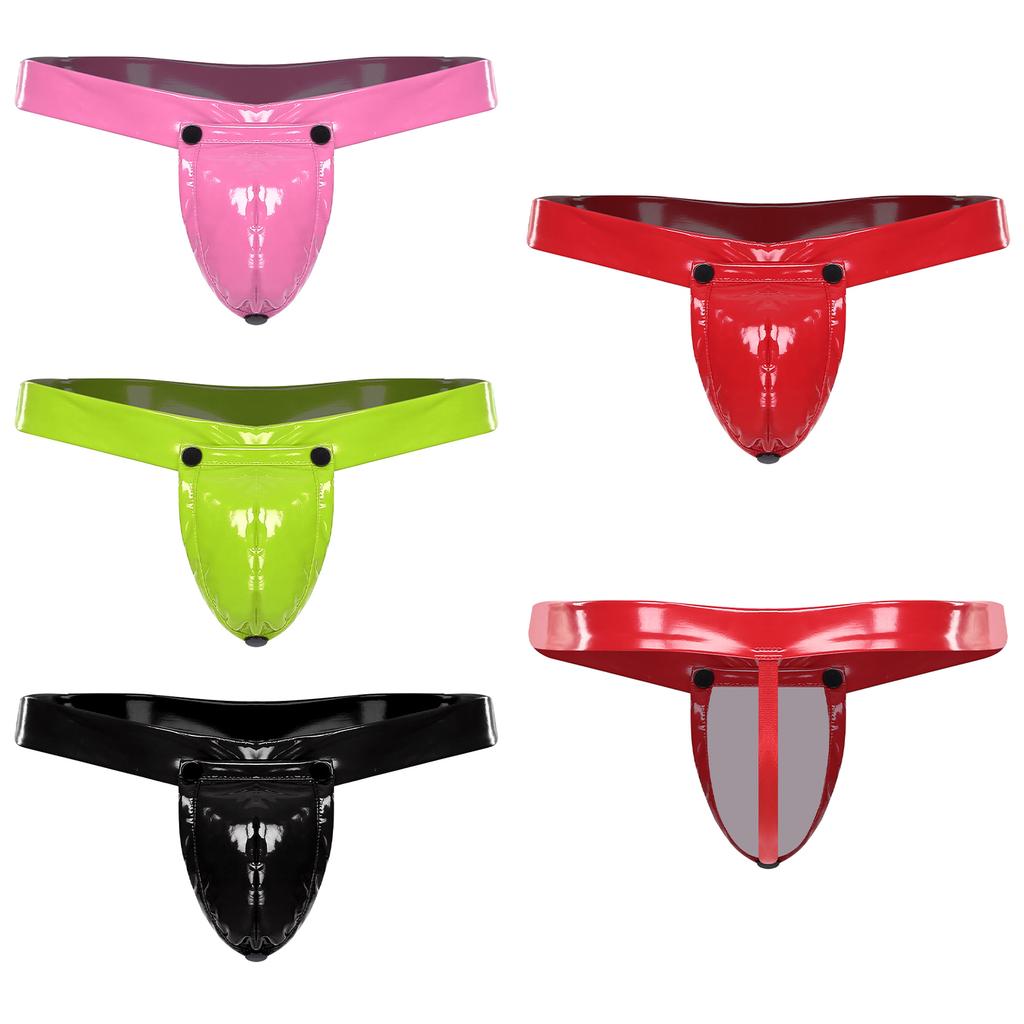 Pánské PU 2 v 1 Jockstrap Tanga O-kroužek Odnímatelný kryt rozkroku T-zadní kalhotky