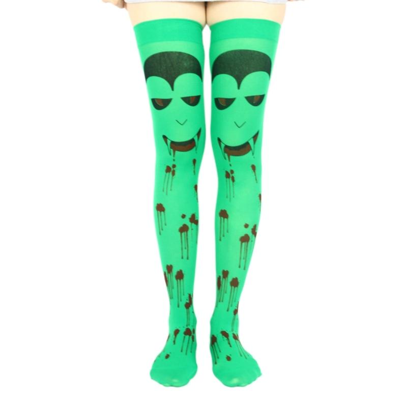Women Halloween Party Stockings Lolita Printing Witch Cosplay Funny Cartoon Costume Long Socks Accessories Props