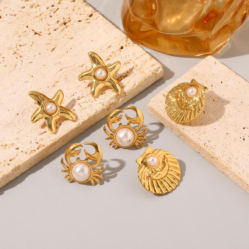 Fashion Stainless Steel Pearl Earrings For Women Geometric Irregular Metal Stud Earring Trendy Jewelry Gift