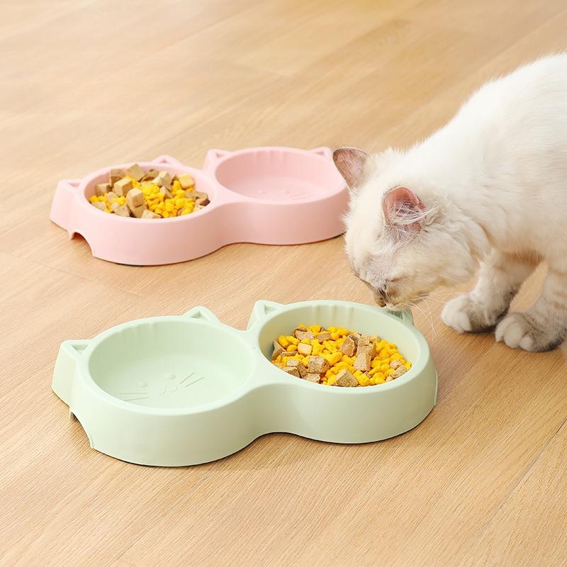 Cartoon Cat Head Shaped Pet Double Bowl Dual Use Bowl for Drinking Water and Cat Food Feeder Dry Wet Separation Anti Slip and Anti Rollover Tableware