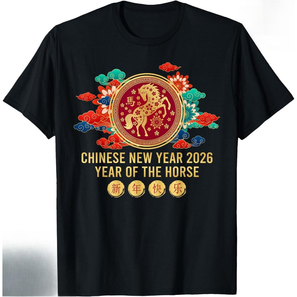 Year of The Horse Chinese New Year 2026 Horse TShirt Woman Man Happy New Year Graphic T Shirts Oneck Cotton Streetwear
