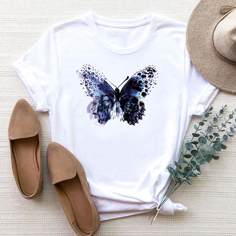 European size Clothing Women Butterfly Watercolor Trend Cute Print Short Sleeve Tee Top Fashion T Shirt Woman Female T Graphic T-shirts