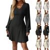Women's Workwear Fashionable Dress V-neck Knitted A-line Long Sleeved Dress