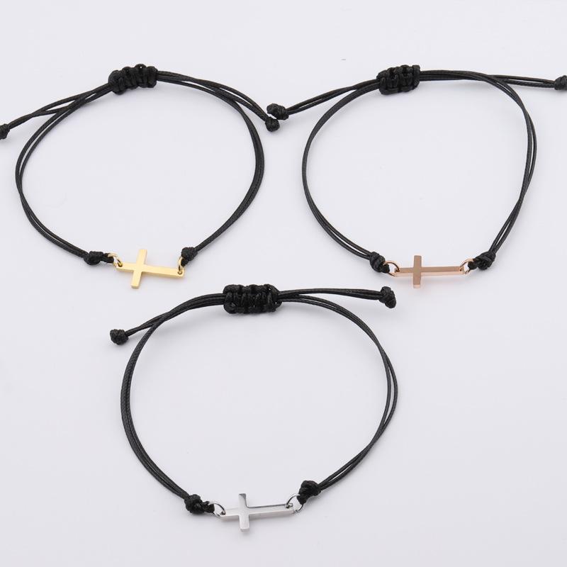 10pcs Handmade Stainless Steel Cross Charm Bracelet Men Braid Adjustable Lucky String Bracelets for Women Jewelry Gift