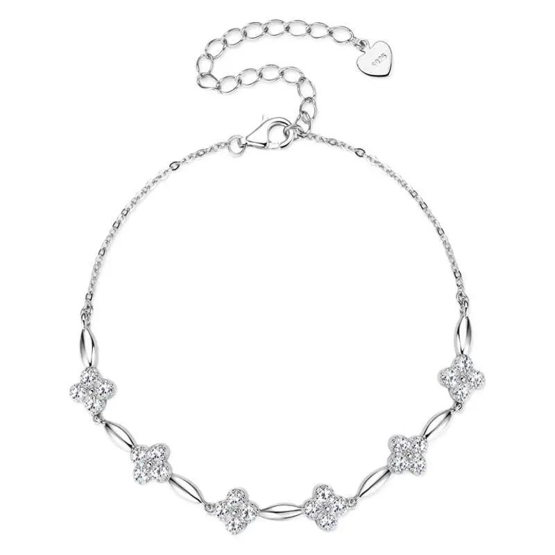 2mm Moissanite Bracelet 925 Silver Four-leaf Flower Adjustable Chain Bracelets for Women Girl Charm Hand Jewelry