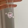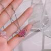 Korean Fashion Pink Crystal Heart Bow Tie Pendant Necklace Silver Color Chain Neck Necklace for Women Wedding Aesthetic Jewelry