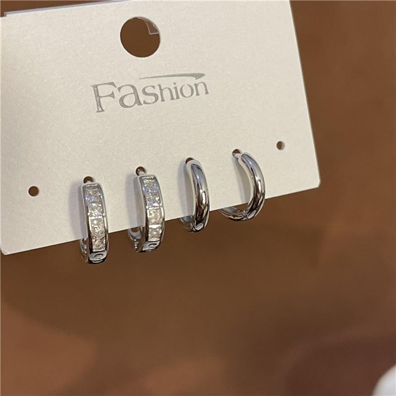 4Pcs/set Stainless Steel Aesthetic Zircon Crystal Hoop Earrings for Women Egirl New Y2K 2000S Cool Daily Wear Jewelry Accessorie