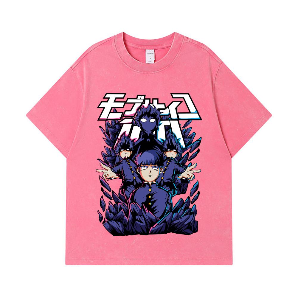 275 GSM Washed T-shirts 100% Cotton Mob Psycho 100 V1 Shiego Print Unisex Heavy Cotton T Shirt
