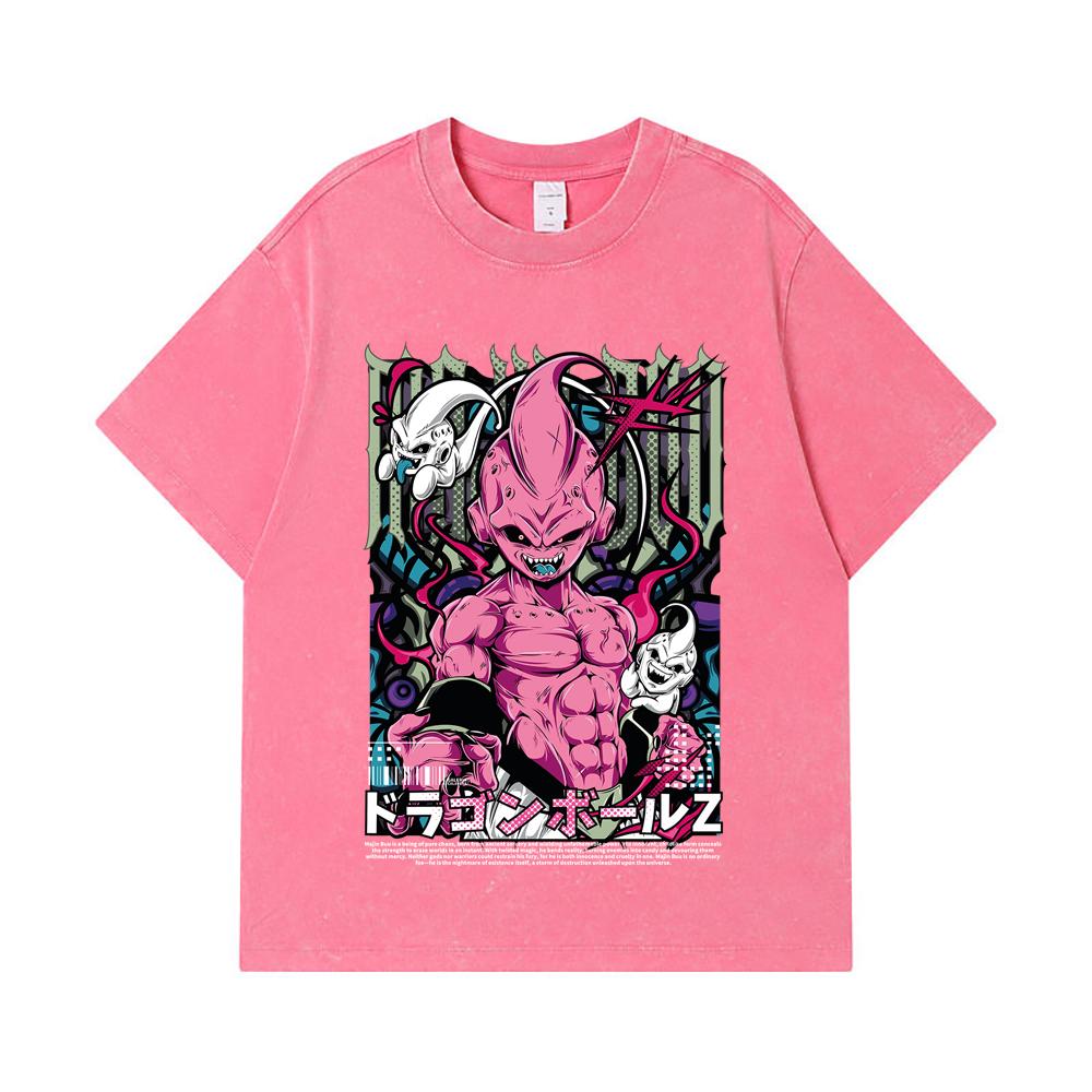 275 GSM Washed T-shirts 100% Cotton Dragon Ball V67 Majin Buu Print Unisex Heavy Cotton T Shirt