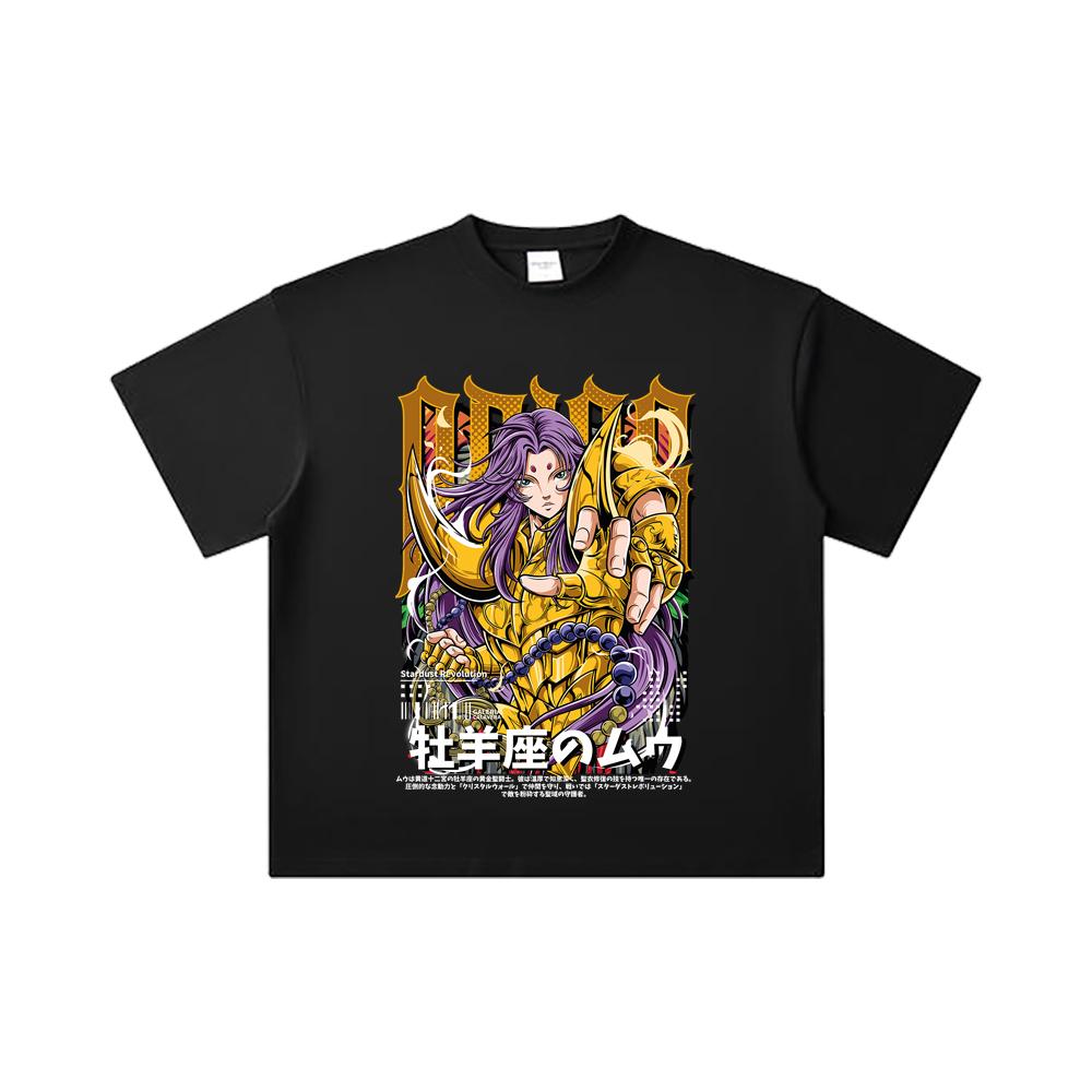 260 GSM Double Yarn 32 Count 100% Cotton Saint Seiya V26 Aries Print Unisex Heavy Cotton T Shirt