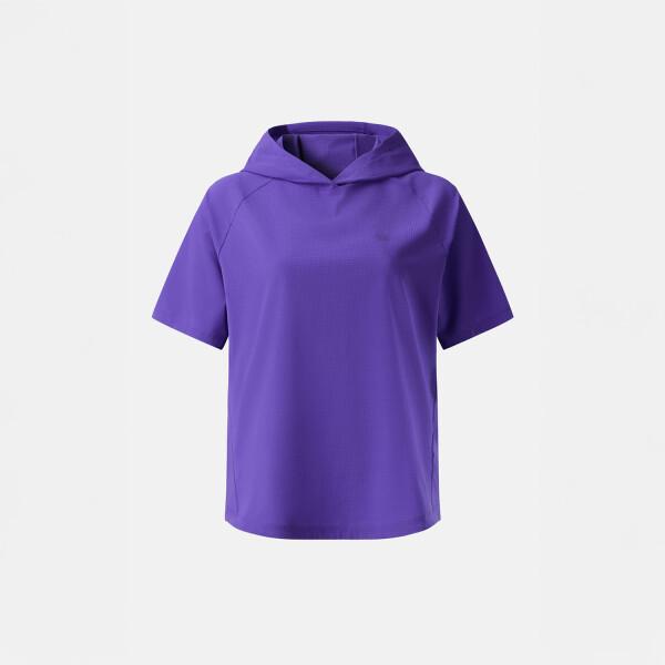 The KOLON SPORT Women's Air Dot Short Sleeve Hoodie T-Shirt JKTCM25342PUR is a lightweight short sleeve t-shirt made from a polyester blend material. It features a hoodie design and exceptional breathability with Air Dot functionality, available in the color Purple.