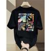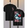 Men's Summer 100% Pure Cotton Fashionable Casual Loose Fit Plus Mountain Reflection Printed Round Neck Short Sleeved T-shirt Top