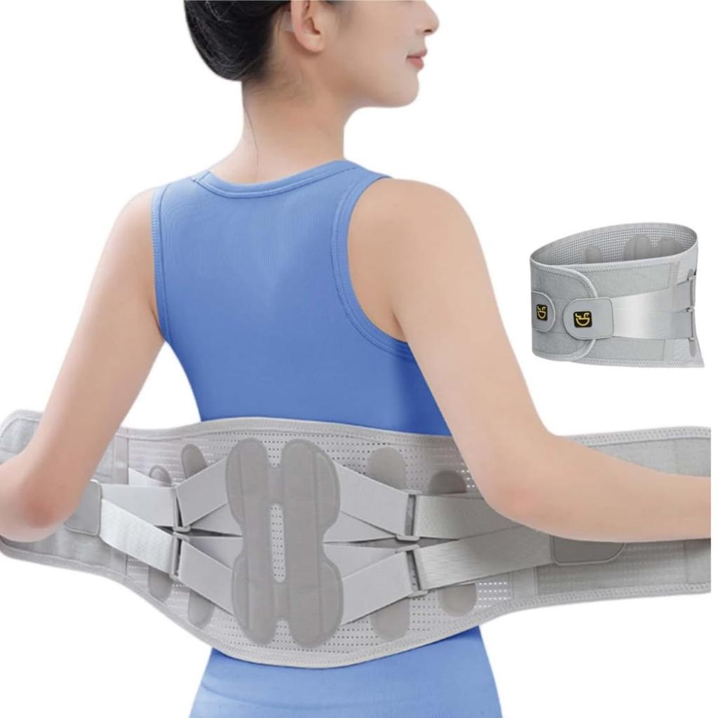Six Support Pillars & Double Compression Support: Four stainless steel bones and two elastic spring bars provide six support pillars for firm lumbar support. The main belt provides gentle compression and lift to the lower abdomen, reducing strain on the lower back. Eight auxiliary belts, positioned from the back to the front, distribute pressure and provide strong support with a double compression structure. Effective for preventing and correcting sudden lower back pain and swayback, as well as relieving chronic lower back pain.